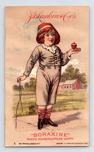 Larkin Boraxine Soap 1890s Victorian Trade Card Child Spinning Top - 3 x 5