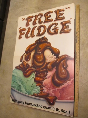 Baskin Robbins ice cream 1982 FREE FUDGE gooey topping store display sign #1