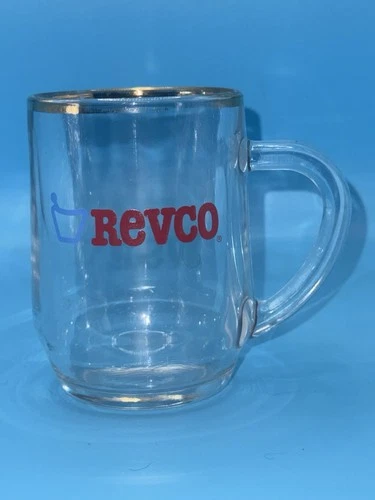 Vintage Revco Drug Store Glass Mug With Gold Rim - 4.25”