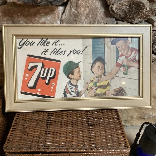 1953 Litho 7up Framed "You Like It... It Likes You. Display 3 Boys baseball