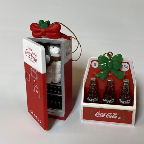 Vintage-style Coca-Cola vending machine & carrier Christmas ornament Lot Of 2