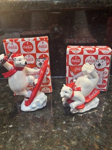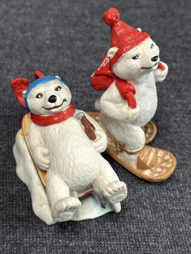 1995 Enesco Coca-Cola Always Snowboarding + Always Sledding Polar Bears 4.5"