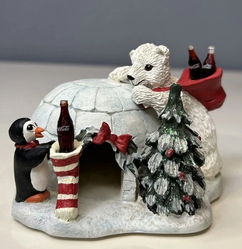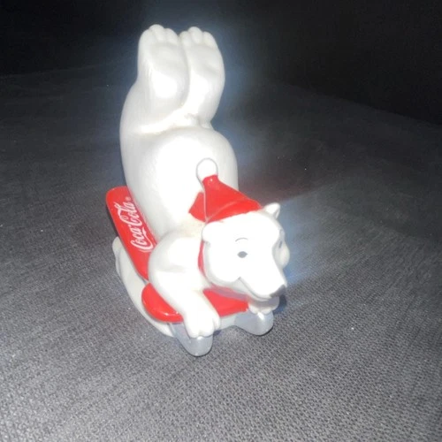 Coca-Cola Polar Bear Figurine 1995 Santa Hat Sled Collectible