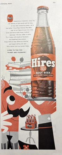1954 Hires Root Beer Soda Roots Barks Herbs Bottle Thirst Pleasure VTG Print Ad