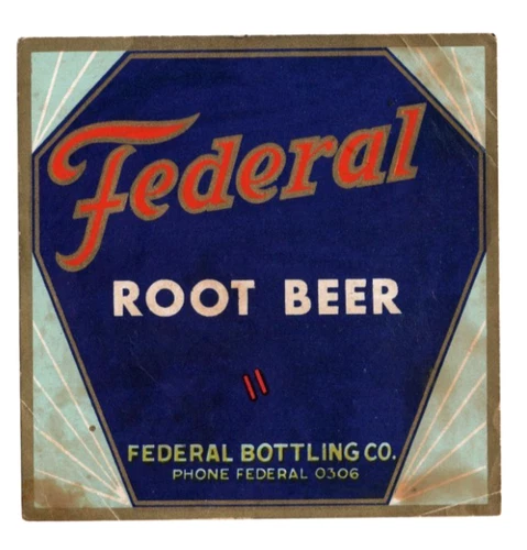 Original 1930s FEDERAL root beer soda label DAMAGED Art Deco Pittsburgh Wheeling