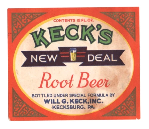 Original 1930s KECK'S root beer soda label DAMAGED Will G. Keck Inc Kecksburg PA