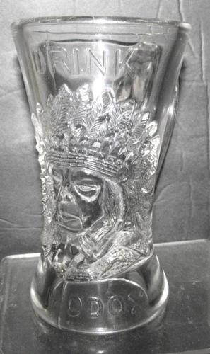 Vintage MODOX Soda Pop Glass Mug w Native American Chief In Full Headdress