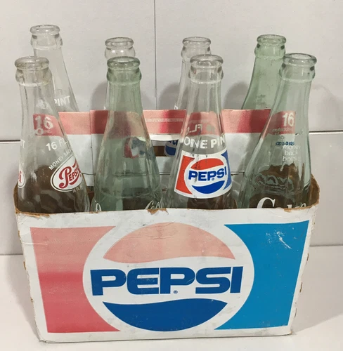 Vintage 16oz Glass Pepsi-Cola Coca Cola Bottle Lot - see description