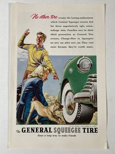 1947 General Squeegee Tire: No Other Tire Dog Vintage Print Ad