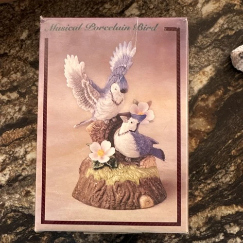 Porcelain Blue Jay Musical Figurine Decorative Collectible with Flowers