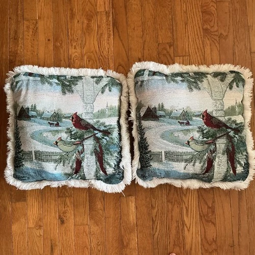 Cardinals Pillows Throw Set Christmas 16x16 Winter Country Scene Sam Timm Art