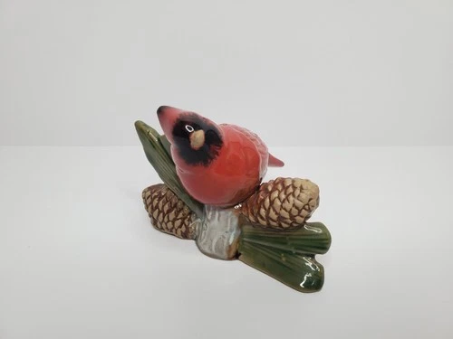 Porcelain Red Cardinal on Pine Cone Figurine Ornament Vintage Holiday Decor 5"