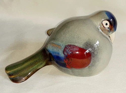 Ceramic Chubby DOVE PIGEON Glossy Glaze Blue Multicolored Art Pottery