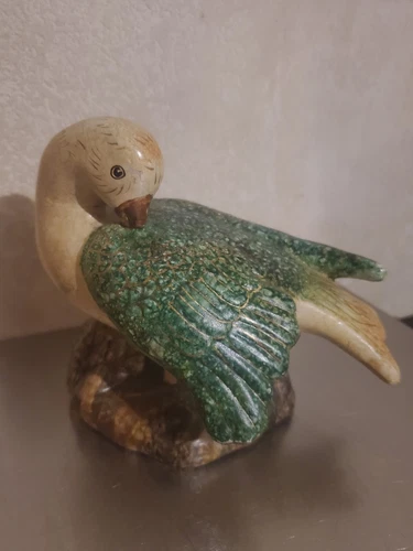 Vintage Ceramic Glazed Speckled Green Gold Dove Pigeon Figurine Statuette. AS IS