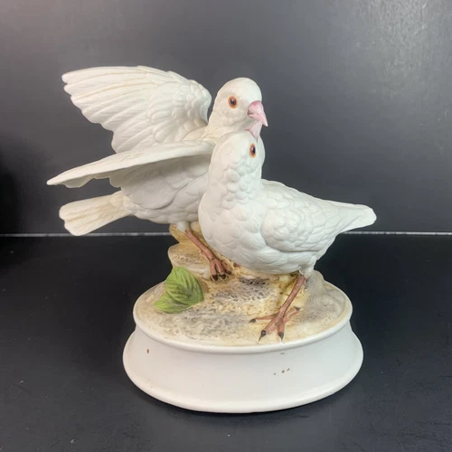 Vintage White Doves Music Box Gorham Gift Japan Figurine Birds Pigeons Musical