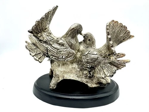Vtg Cast Metal Birds Dove Pigeon Figures Birds Turtle Doves - Lacqured E.P.N.S