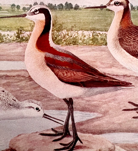 Wilson's Phalarope Shorebirds 1936 Bird Lithograph Color Plate Print DWU12B