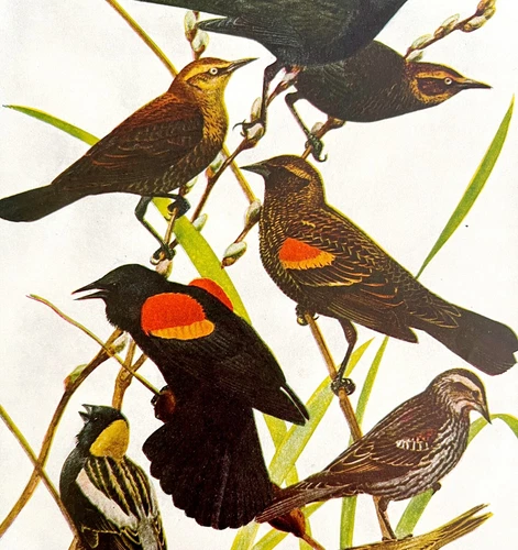Red Winged Blackbirds Bobolink 1936 Bird Art Lithograph Color Plate Print DWU12A