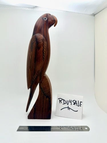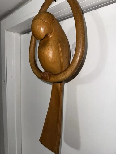 Vintage Handcrafted Solid Wooden Parrot - 11 inches tall x 3 inches x 2 inches