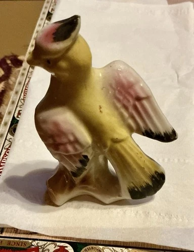 Vintage Japanese ceramic bird figurine, possibly a cockatoo or parrot.