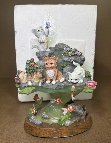 Bradford Exchange A PURR-FECT DAY Illuminated Sculpture Jurgen Scholz Cat Water!