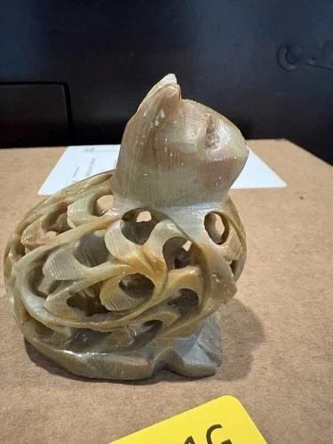 Carved Painted Kitten Cat Lover Lightweight Wood Stand Decor Intricate Detail