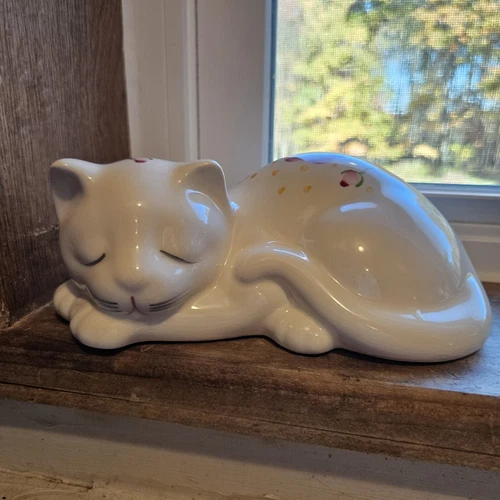 Hand Painted Ceramic Sleeping Cat Floral Design Lasting Products Inc Made In USA