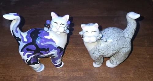 Lacombe Ceramic Cat Figurines Set Purple Crackle Finish Collectible 2001