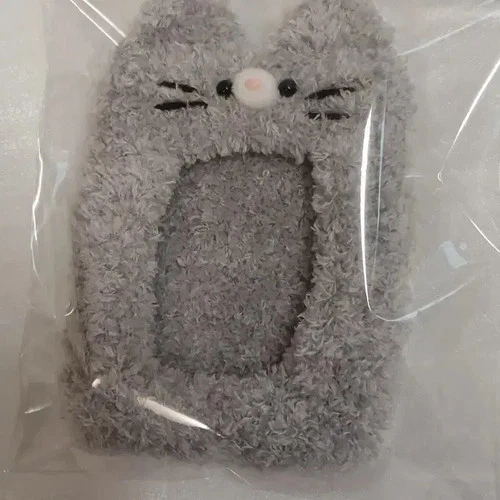 Handmade Gray Cat Pom-Pom Photo Card Holder - Knitted Accessory
