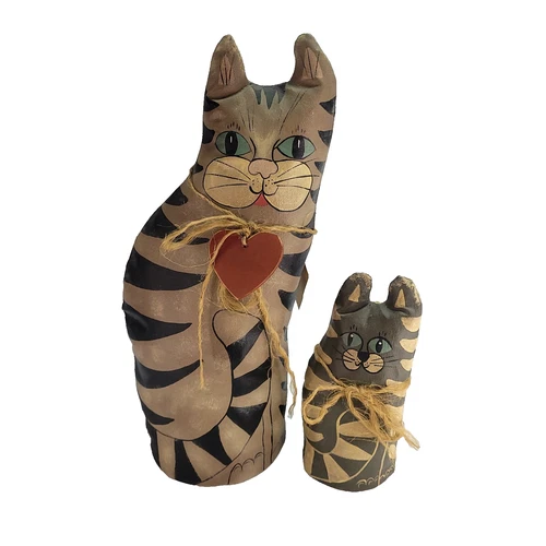 Primitive Cloth Painted Cat Figures Phyllis Giberson Folk Art Mom & Kitty Signed