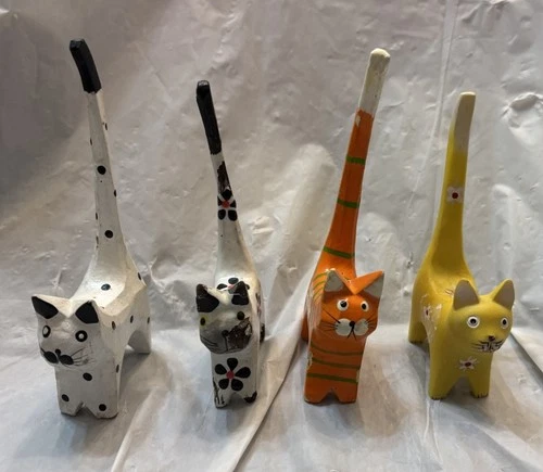 Wood Cat Figurine Carving Statue Sculpture Wooden Small Assorted Color One Resin