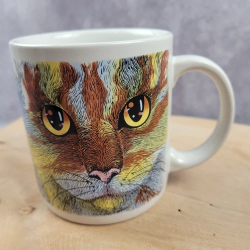 Norcrest Vintage Mug Three Cat Faces Eyes Nose Whiskers Retro Graphic Art Cup