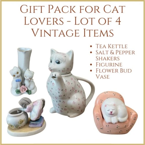 Vintage Gift Pack for Cat Lovers - Lot of 4 - Maneki Neko & Other Collectibles