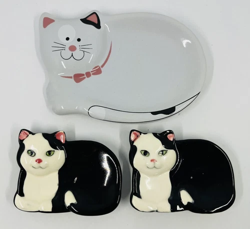 The Good Company 1989 Black & White Cat Trinket Dish & Other Dish Tea Bag Holder