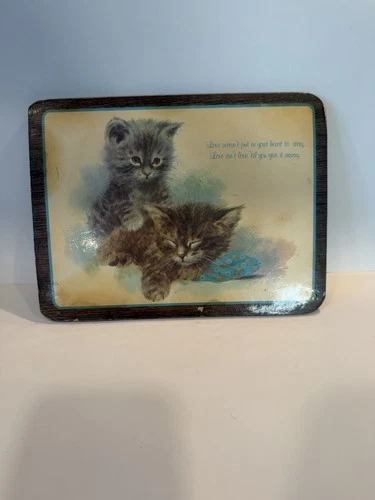 Kittens Cats Hot Pad Plaque Wall Art cork Inspirational Emerson friend vintage