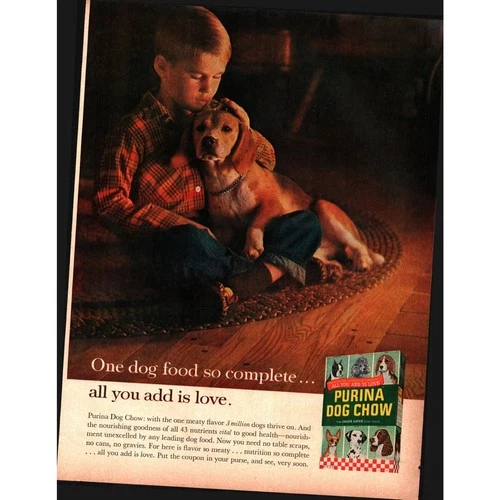 1963 beagle & boy photo Purina Dog Chow vintage print ad NOSTALGIA c6