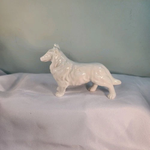Dog figurine Animal sculpture white ceramic tozai lassie domestic dog glass New