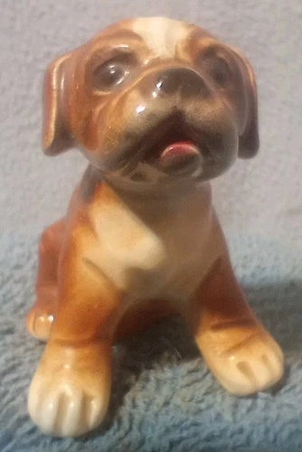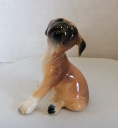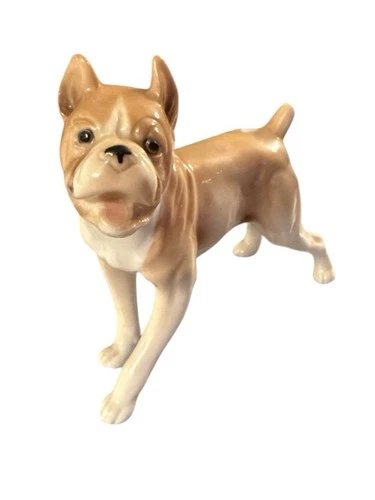 Vintage Porcelain Ceramic Boxer Dog Collectible Figurine Tan White 5”