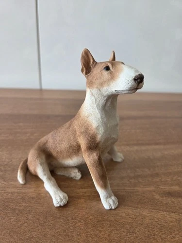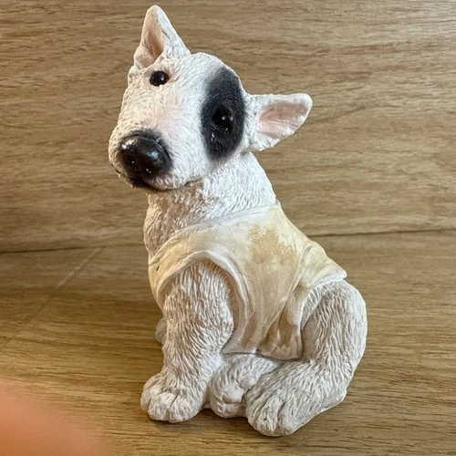 Bull Terrier With Black Eye Spot Figurine 3.5” Wearing Tank Top Shelf Decor