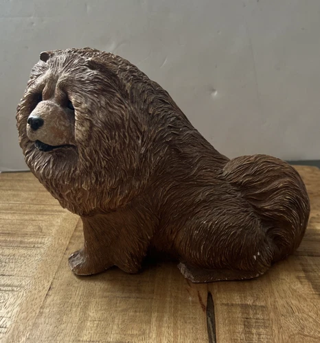 Chow Chow Dog Figurine Realistic Resin Puppy Statue Brown Fluffy Collectible