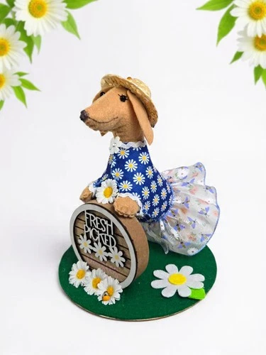 Felt Dachshund Cream Tan Sculpture Fresh Picked Daisies Spring Mother's Day