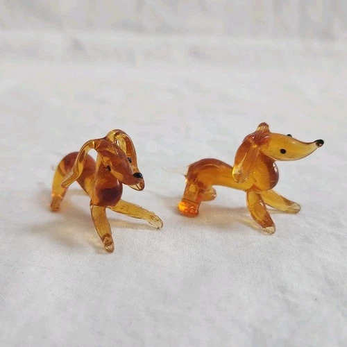 Vintage Amber Art Glass Dachshund Puppy Dog Miniature Figurines Hand Pulled