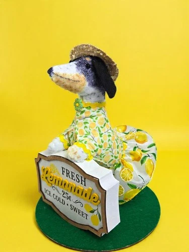 Felt Dachshund Black Tan Piebald Sculpture Fresh Lemonade Spring Mother's Day