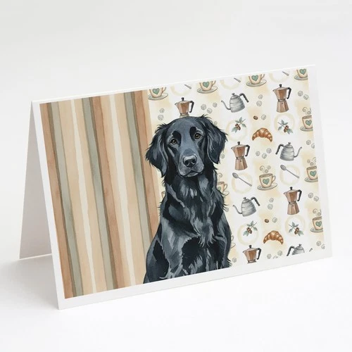 Caroline's Treasures Black Flat-Coated Retriever Coffee Bar Greeting Cards Pk 8