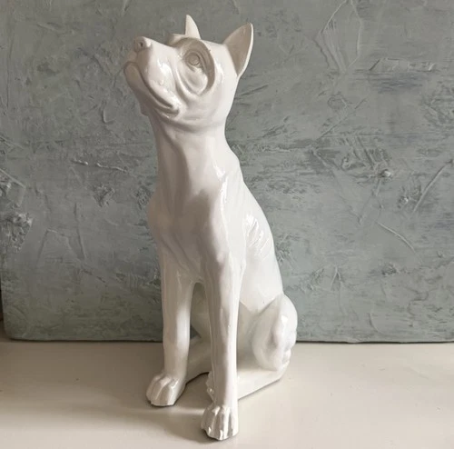 VTG White Dog Statue Figurine 14 Inches Tall Boxer Great Dane Resin