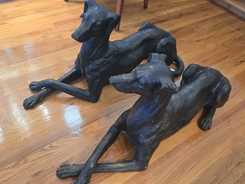 (2)cast bronze greyhounds/whippets dogs sculpture statues LARGE 44"x 42" 1950s