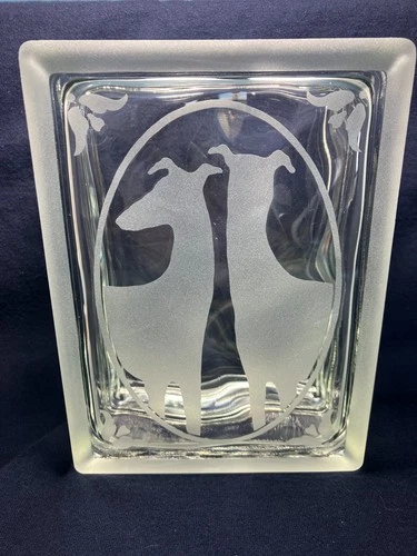 Greyhound Dogs art block 6x8" / True Sandblasted Technique / Hand Made Not Store