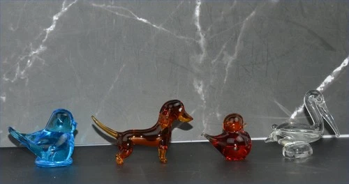 1990 Ron Roy Blue Bird & 3 Other Glass Animals - Dog, Pelican, Bird