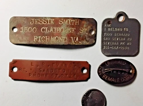 1941 Virginia dog tag and three other tags, all dug in Central Virginia