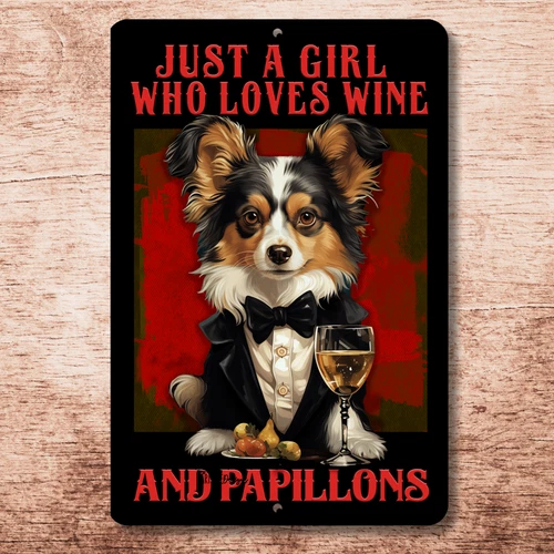 Papillon Wine Bar Sign Just Girl who Loves metal tin dog wall art gift handmade